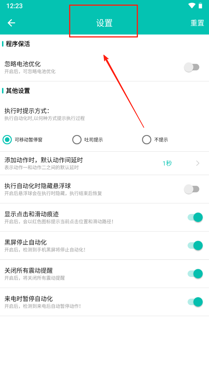 4、进入设置:点击“设置”按钮,调整程序的执行提示方式和其他选项。
