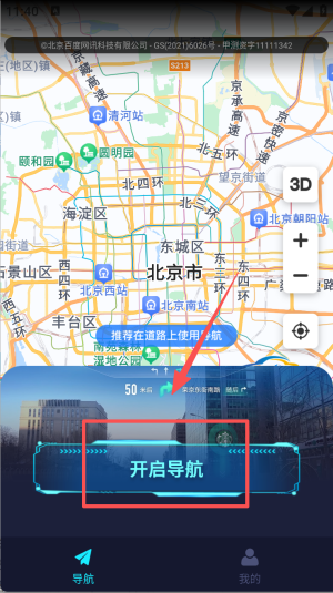 2、在搜索栏输入“北京南站”并点“开启导航”,屏幕实时叠加3D箭头指引。