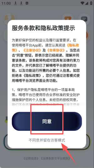 2、同意隐私政策:点击“同意”按钮,接受隐私政策并继续。