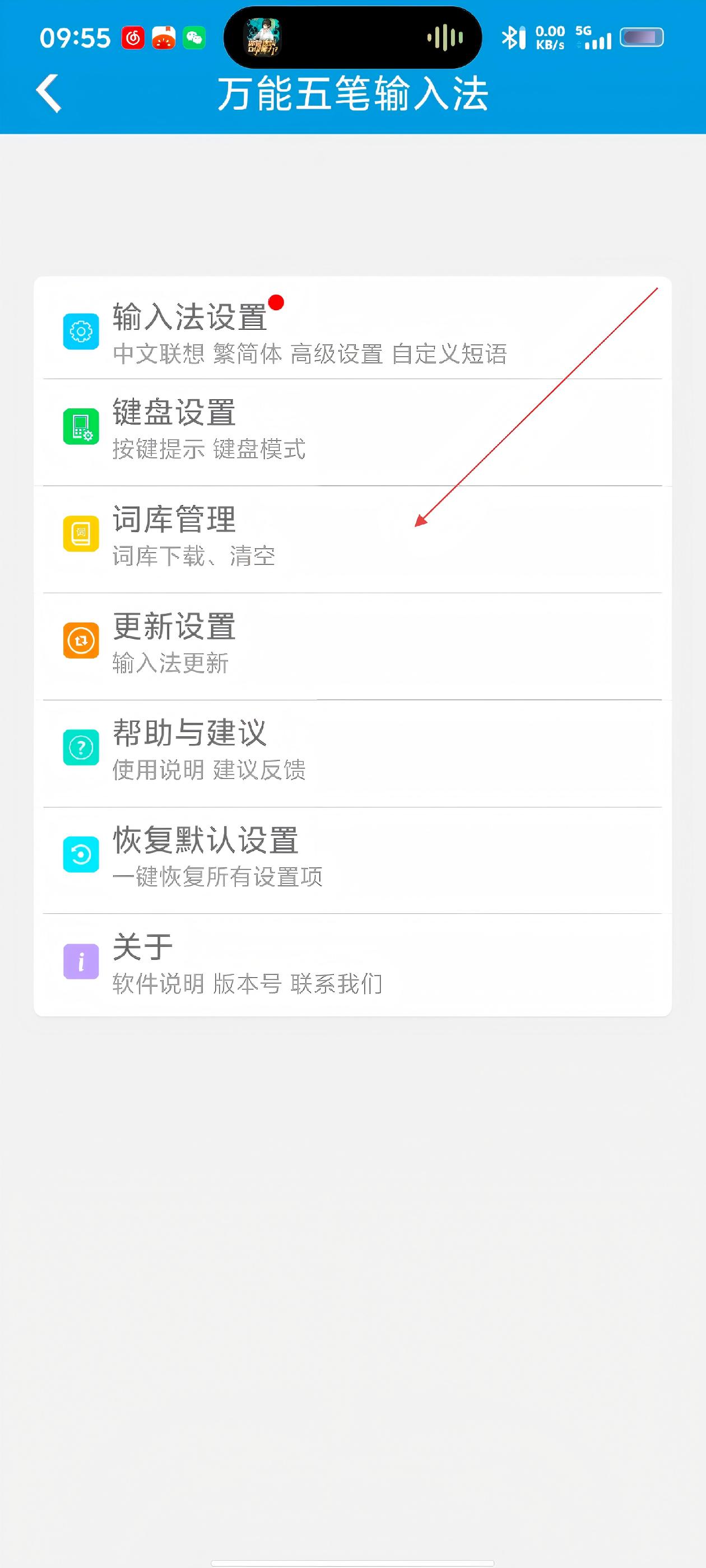 2、进入【万能五笔输入法】主界面后,若要管理词库,可点击【词库管理】选项。