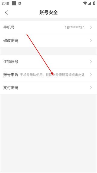 4、在账号安全页面,点击【账号申诉】,若手机号无法使用、需找回账号密码等可点击此处操作。