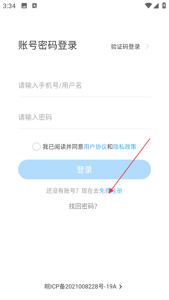 2、无账号时,在登录页点【免费注册】,进入注册流程填信息。
