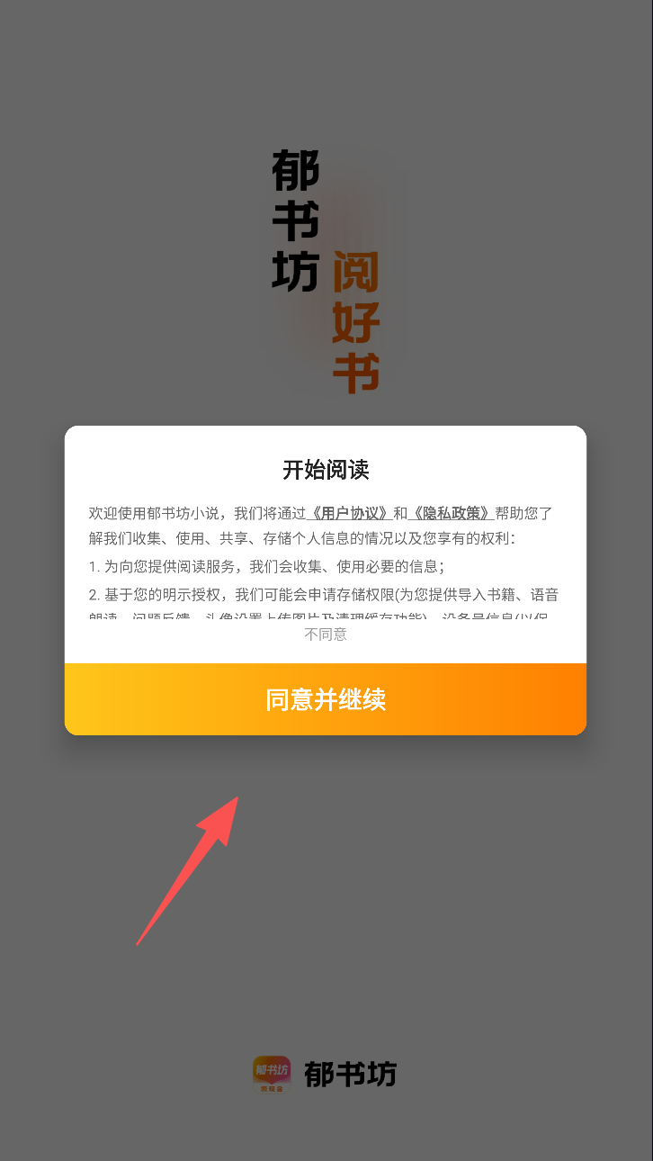 1、点击“同意并继续”按钮,表示您已阅读并同意用户协议。