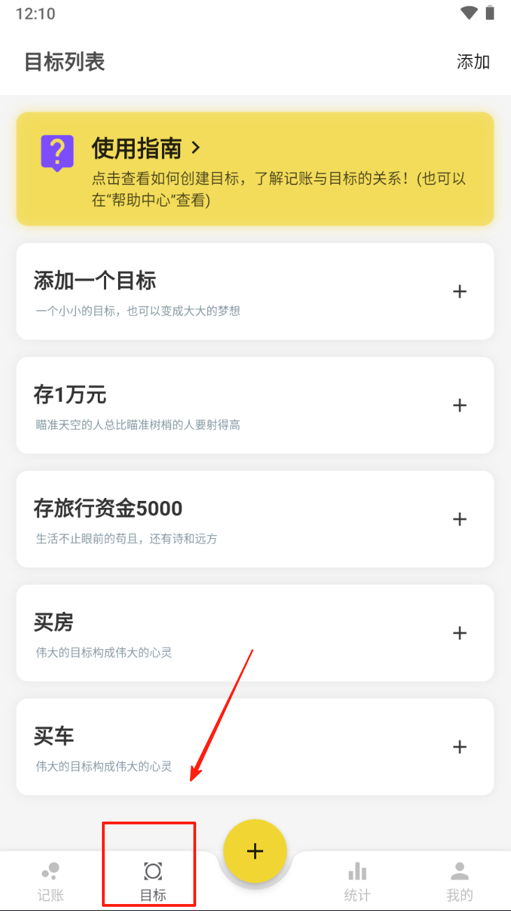 2、设定财务目标。点击“目标”图标,设定并跟踪您的财务目标。