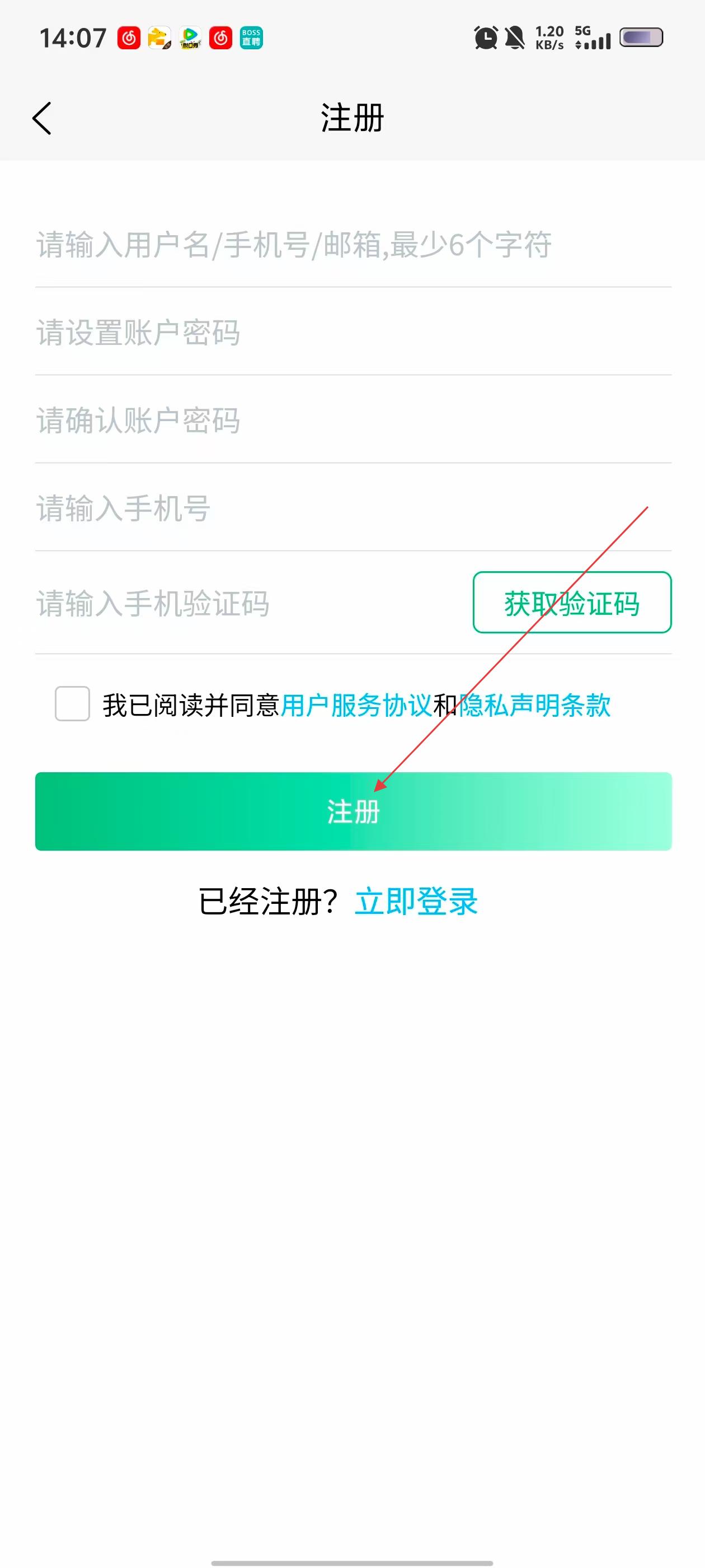 4、确认填写信息无误后,点击【注册】,即可完成账号注册。