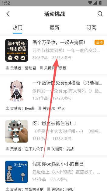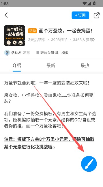 7、点击挑战活动频道里的活动,挑选一个契合上色主题的,像即将到来的万圣节就很合适。