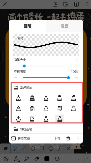 3、提供了数十种画笔可供使用,用户也能导入自己喜欢的笔刷。