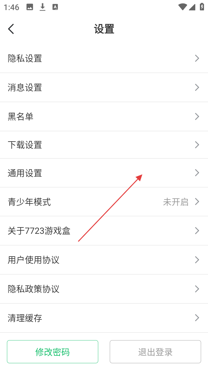 3、在设置页面,点击【通用设置】选项,可进入通用设置页面。