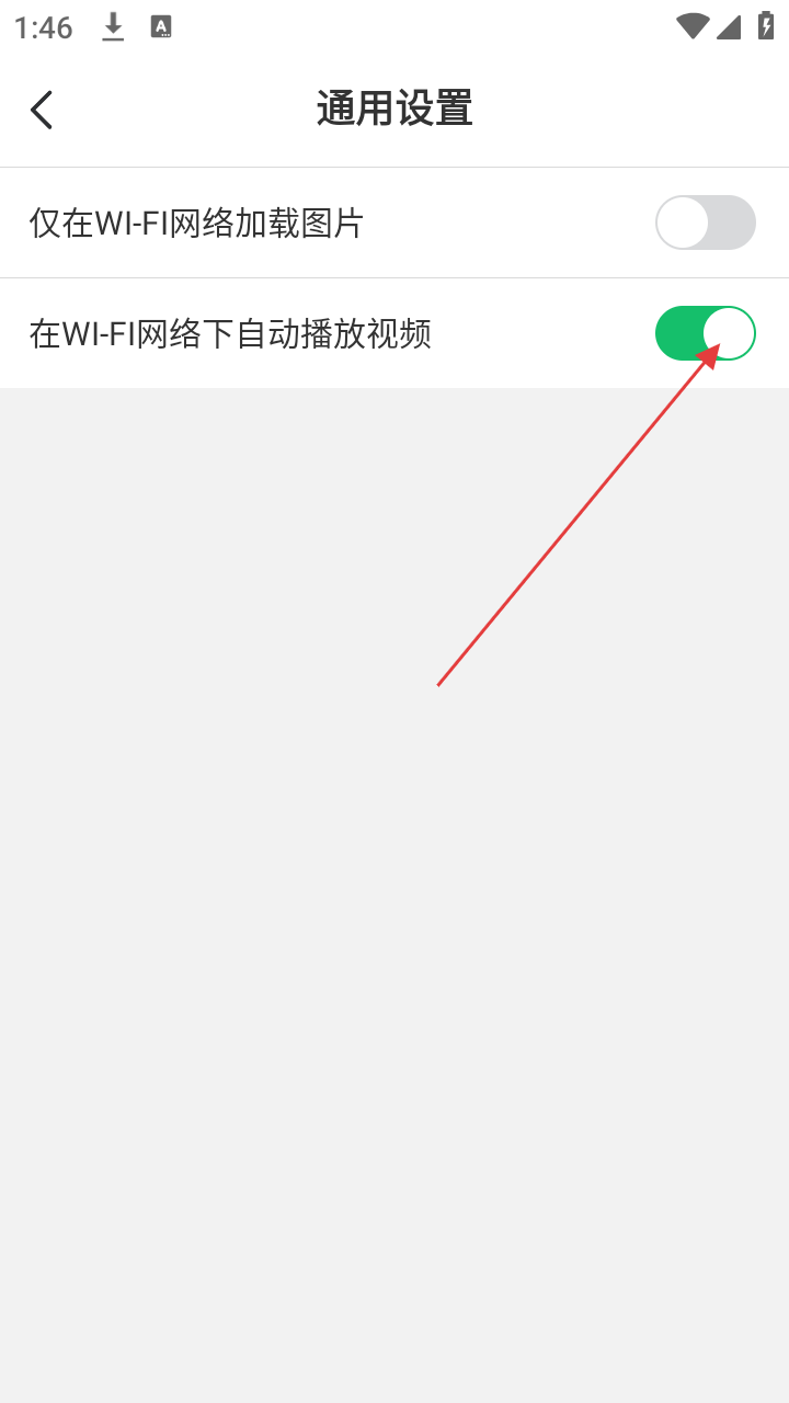 4、在通用设置页面,可根据需求开启或关闭“在WI-FI网络下自动播放视频”等选项,以调整图片加载和视频播放的相关设置。