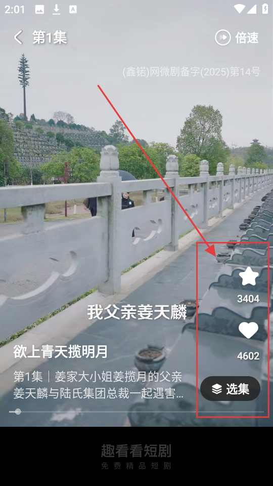 3、在短剧播放界面点击收藏图标,就能将短剧加入收藏,方便后续观看哦。