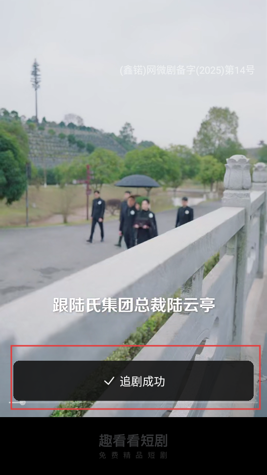 4、收藏成功后会提示【追剧成功】,这样就能轻松追更喜欢的短剧啦。