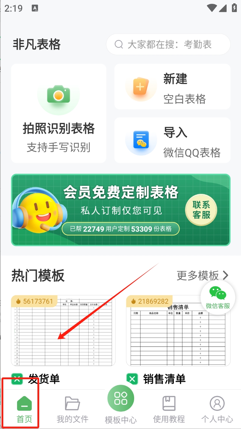 1、在首页选择“发货单”或“销售清单”等模板,开始创建或编辑文档。