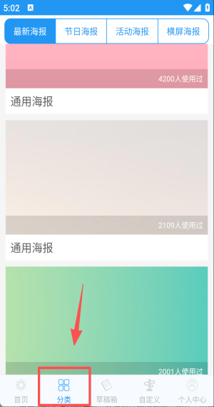 3、进分类选节日或活动模板,看2000+使用人数,挑合适场景再点编辑。