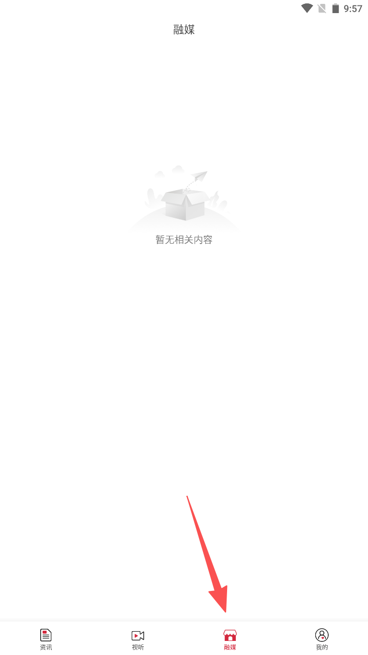 3、点击底部导航栏的“融媒”选项,查看暂无相关内容提示。
