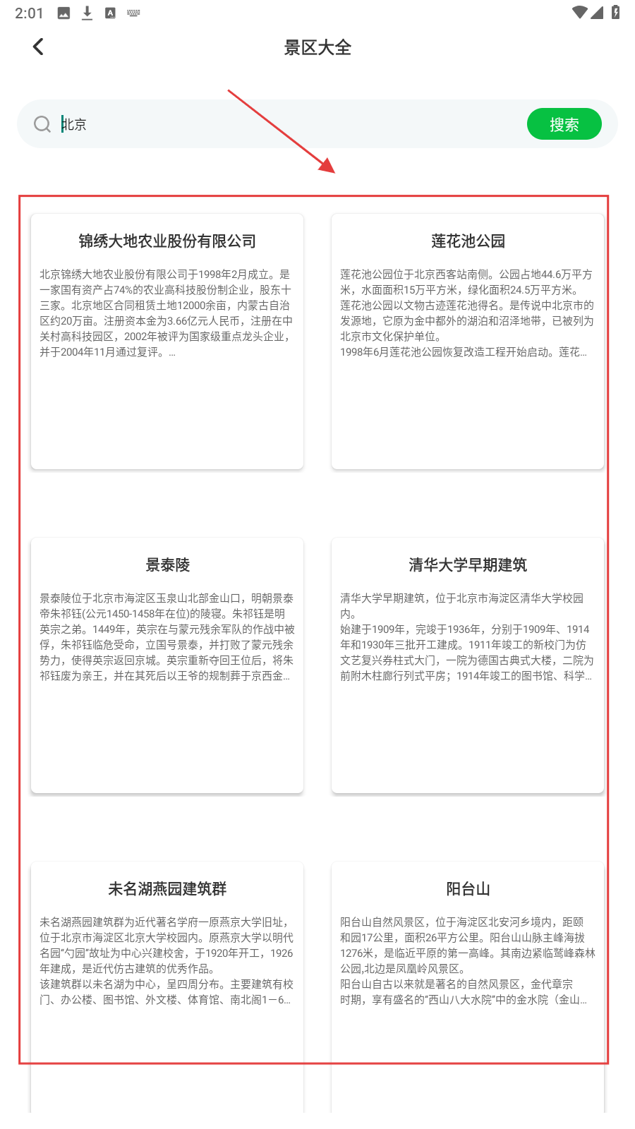 在【景区大全】的搜索框里,输入城市名称,比如热门的【北京】【上海】这类,就能快速找到想要的景区。