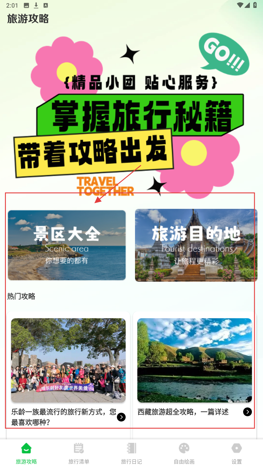 进入旅游攻略页面后,先点击【景区大全】板块,通过它了解各类景点的详细信息,这样能让行程规划变得更高效。