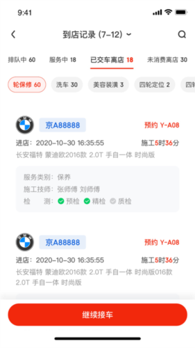 排队规则:到店车辆会依据实际到店时间自动生成排队序列,以此来规范门店的接车先后顺序。