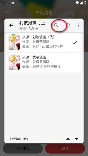 打开当前阅读的漫画页面,在详情页里点击“换源”按钮。