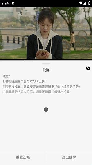 点击播放页面右上角的TV图标,就能搜索并连接投屏设备,畅享大屏观影的乐趣。