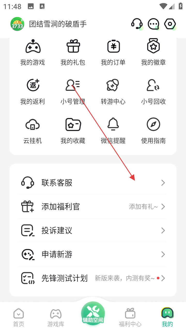 1、在3733游戏盒首页,点击底部【我的】,进入个人页面,可查看各类功能与服务入口。