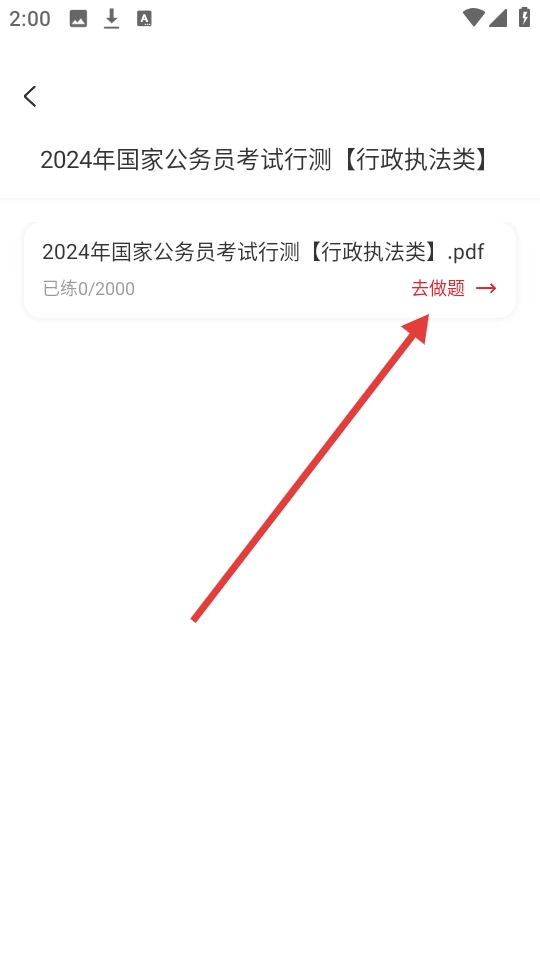 进入具体的试题页面后,你会看到对应的试题文件,点击【去做题】按钮,就能开始作答这套题目了。
