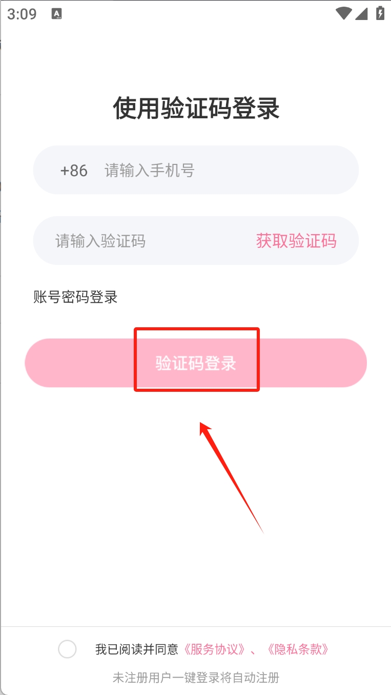 2、然后,输入手机号并点击“验证码登录”按钮进行登录。