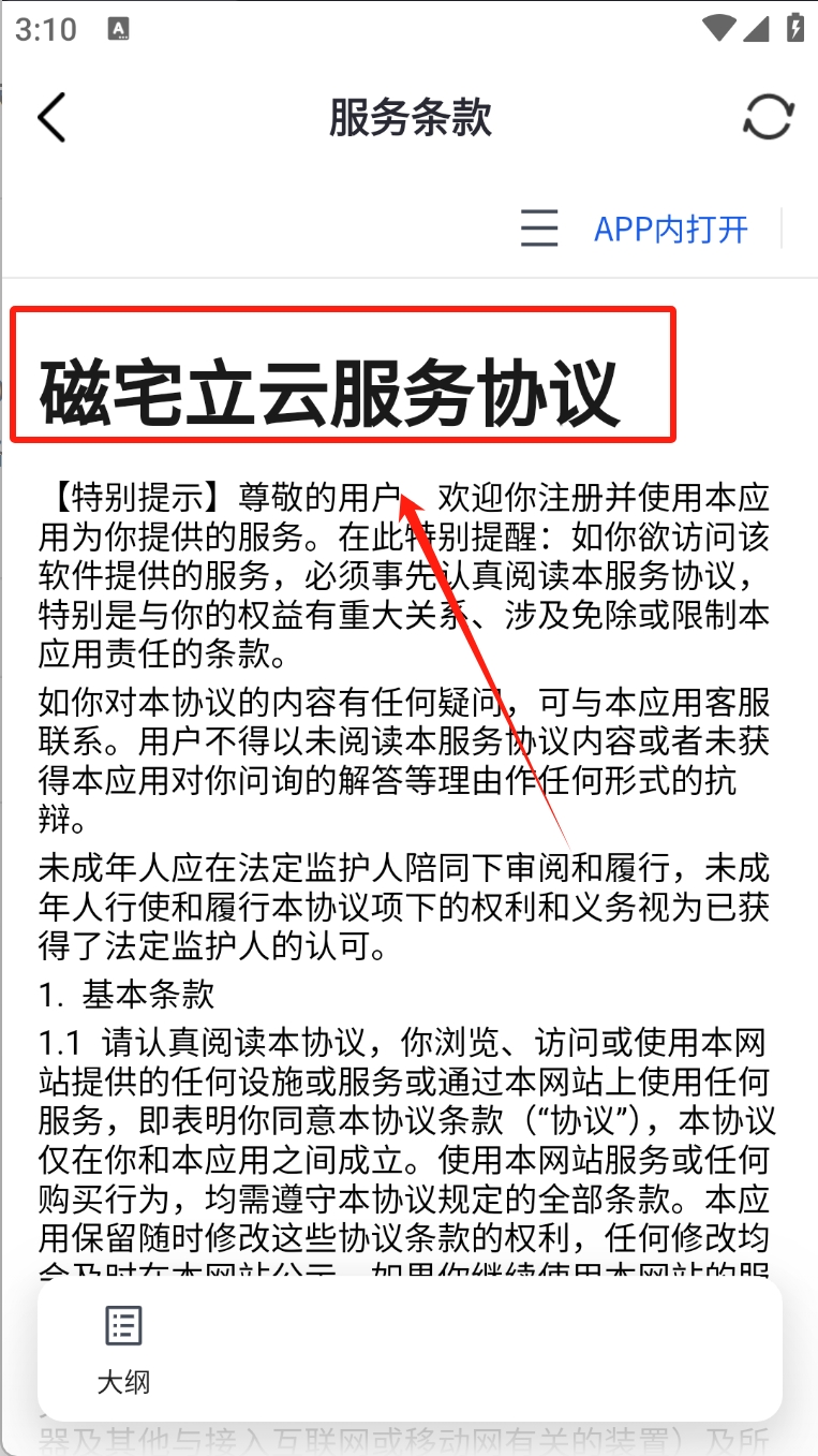 3、接着,阅读并同意《磁宅立云服务协议》以继续使用服务。