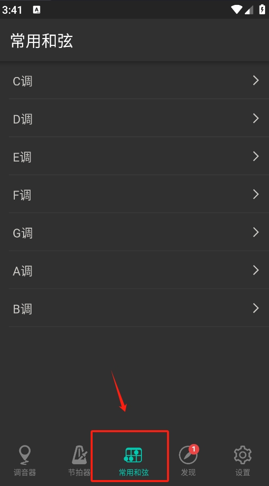 3、浏览常用和弦列表,选择需要学习的和弦调。