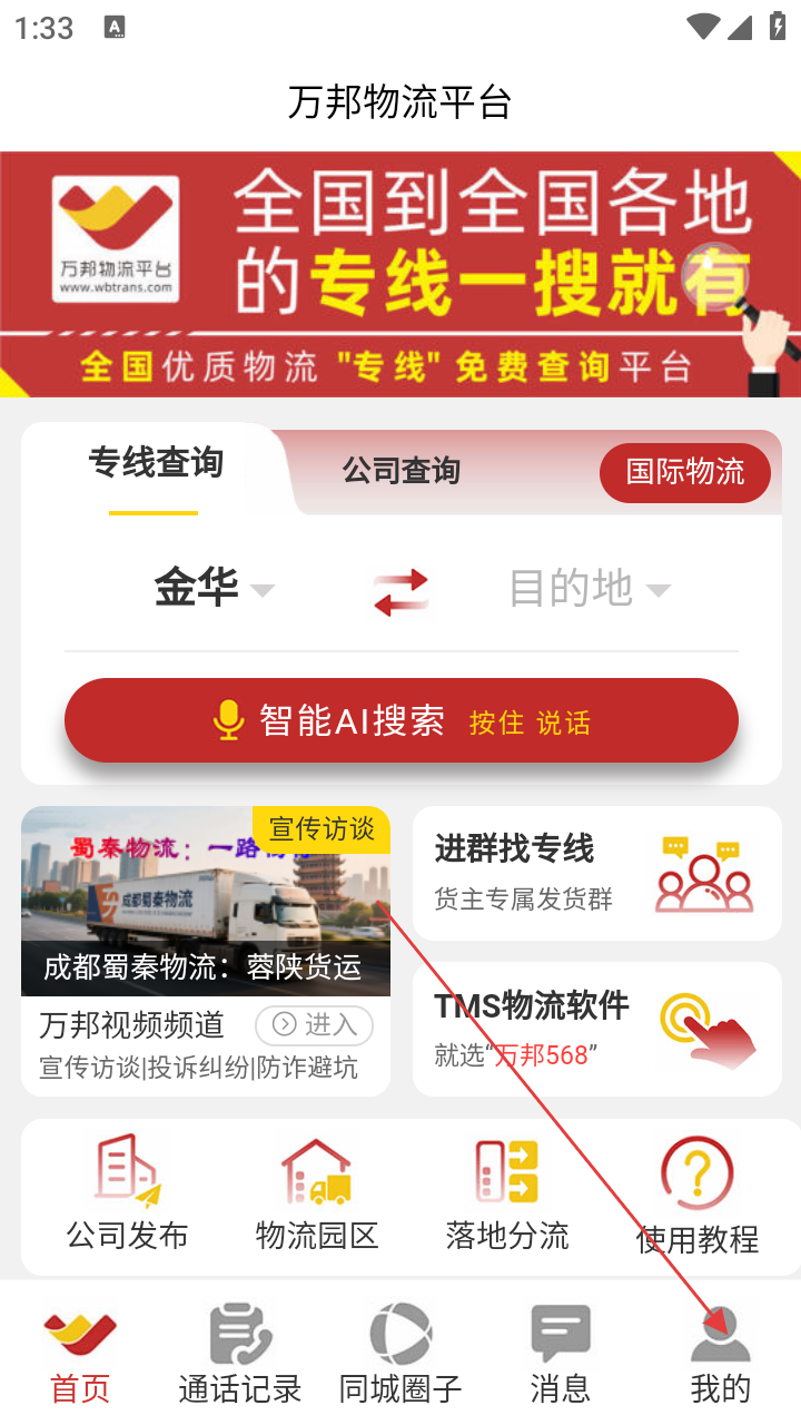 1、打开万邦物流平台,点击底部【我的】,进入个人中心。