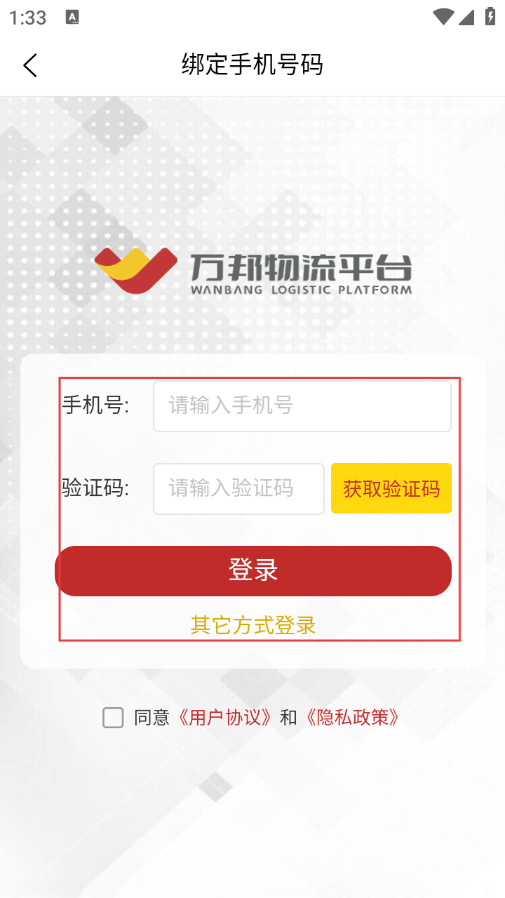 3、选择登录方式,若选【其它方式】,进入绑定手机号码页。