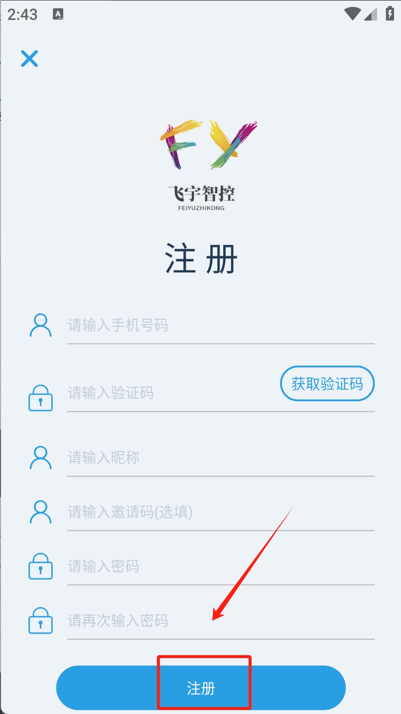2、在注册页面,输入手机号、验证码、昵称和密码,然后点击“注册”。