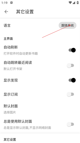 2、进入【我的】页面后,点击【其它设置】选项,可进入其它设置界面调整软件功能相关设置。