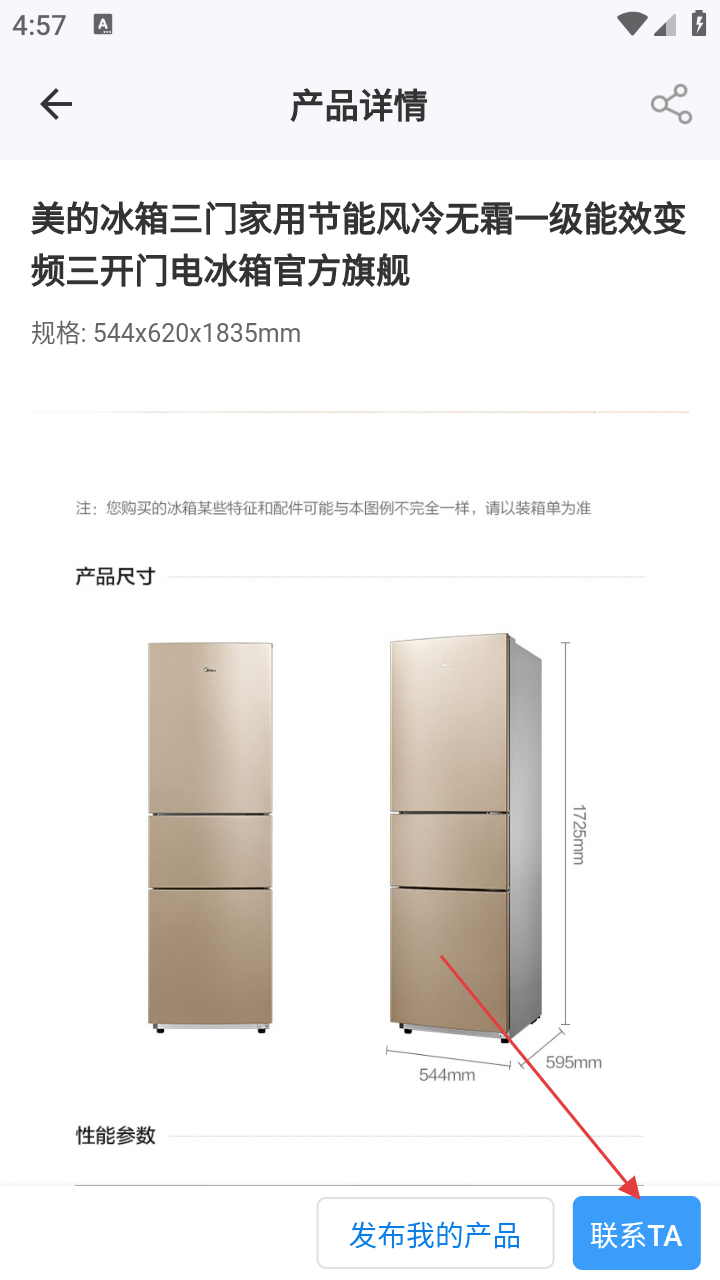 4、在产品详情页,点击【联系TA】按钮,可通过电话等方式联系商家咨询产品相关信息。