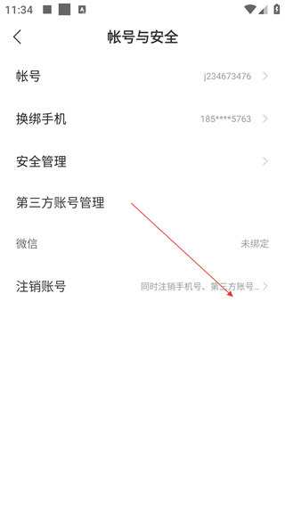4、在帐号与安全界面,点击【注销账号】,按照提示完成账号的注销操作。