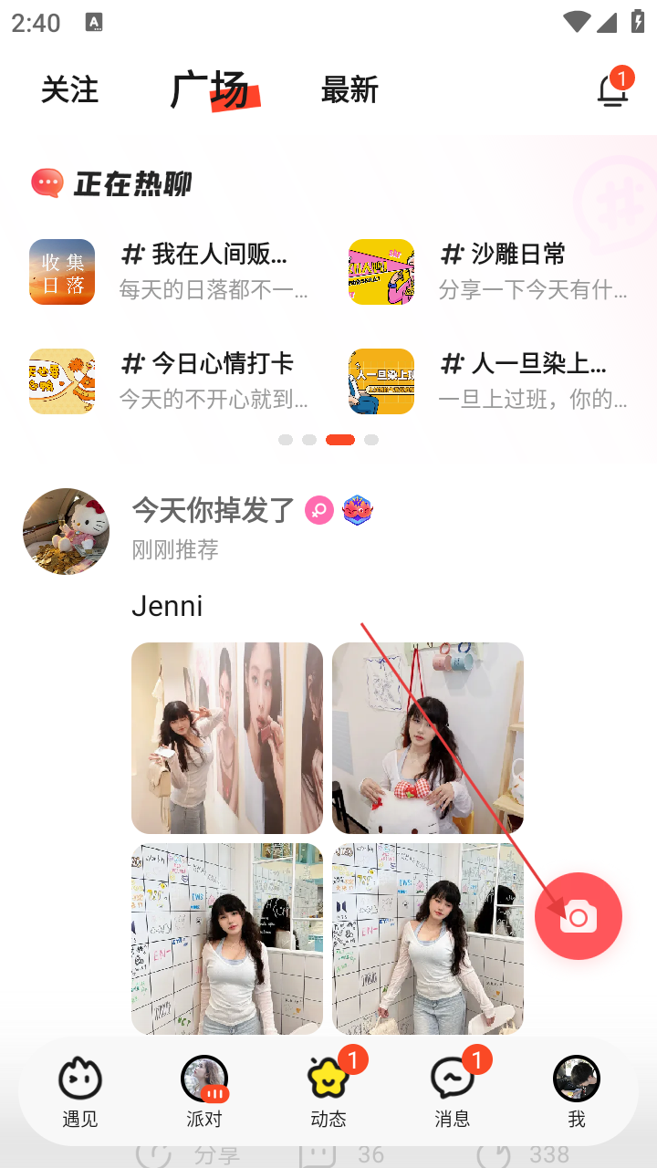 可以每天找动态分享,找和你兴趣相投的人,点击开始聊天;