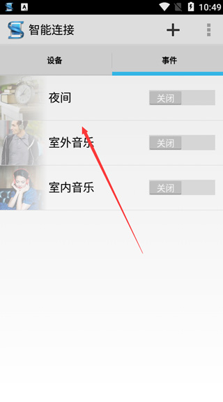 2、点开事件,可以设置夜间、室外音乐、室内音乐等;