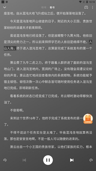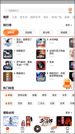 1、用户进入首页的小说页面中选择需要听阅的小说