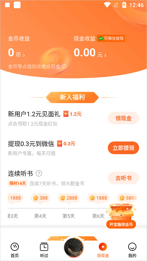 番茄畅听听书赚钱是真的,而且新用户进入平台后都可以领取现金红包