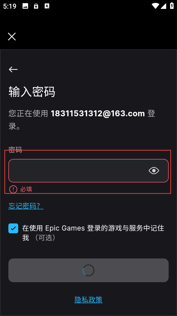 3、在输入密码界面,输入对应邮箱的密码,可勾选【在使用Epic-Games登录的游戏与服务中记住我】。
