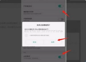 打开开发者选项和USB调试,允许USB调试。