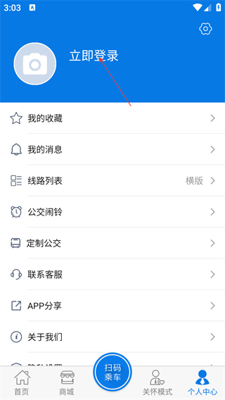2、点击底部【个人中心】进入个人页面,选择【立即登录】选项,进入登录界面。