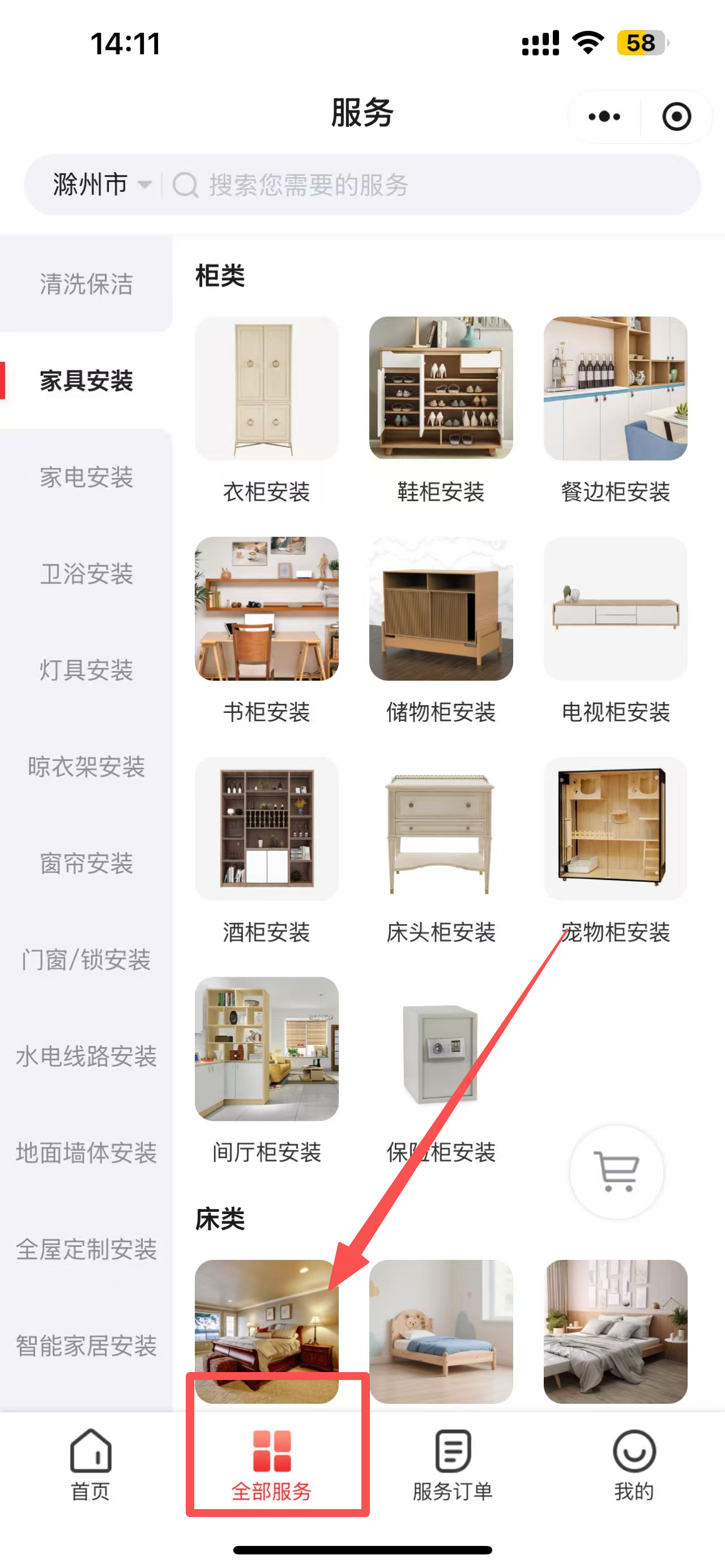 3、查看全部服务:点击“全部服务”图标,浏览并选择更详细的安装服务。