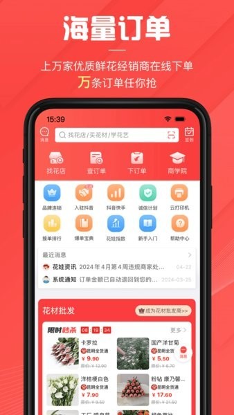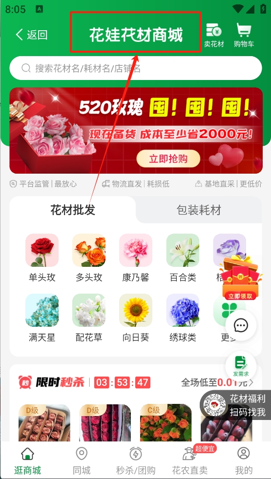 2、花材采购平台:一站式供应鲜花及耗材,支持批量采购享受折扣,售后团队24小时响应品质问题。