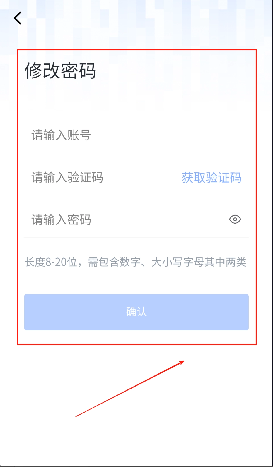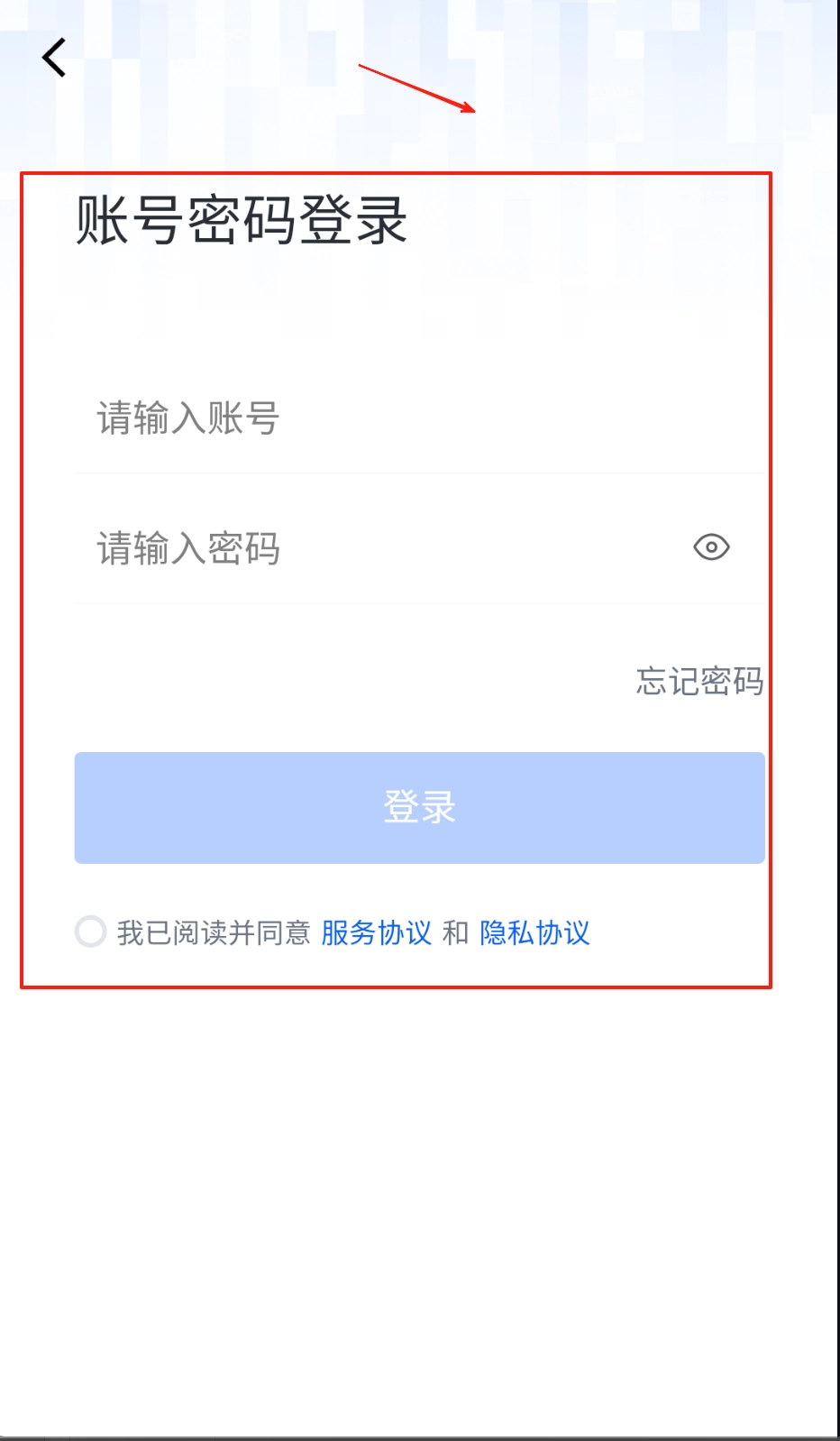 1、进入登录页面后,先选择密码登录或验证码登录的方式,注意不要填错输入框;密码栏旁的小眼睛图标可以切换密码的显示与隐藏状态,确认信息无误后再点击蓝色的登录按钮。