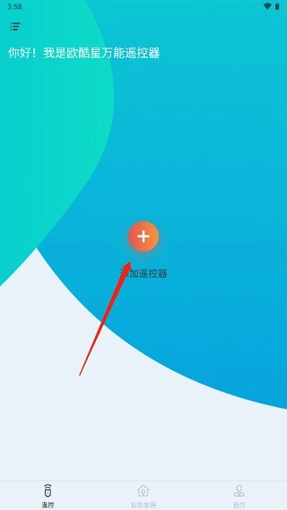 1、启动欧酷星智控应用,点击添加设备的按钮。