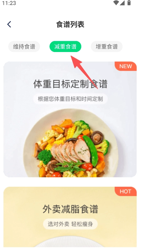 2、食谱按维持减重增重分类,便于根据自身需求快速选择对应的饮食方案。