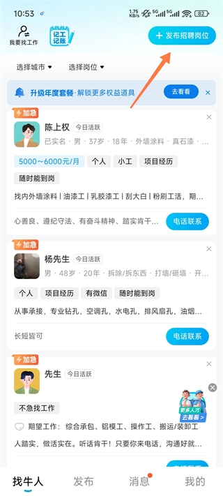 4、当然如果你选的是【我要招人】即可在主页找牛人或者发布招聘岗位