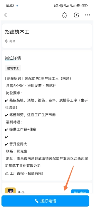 3、查看岗位详细,觉得可以胜任点击拨打电话咨询