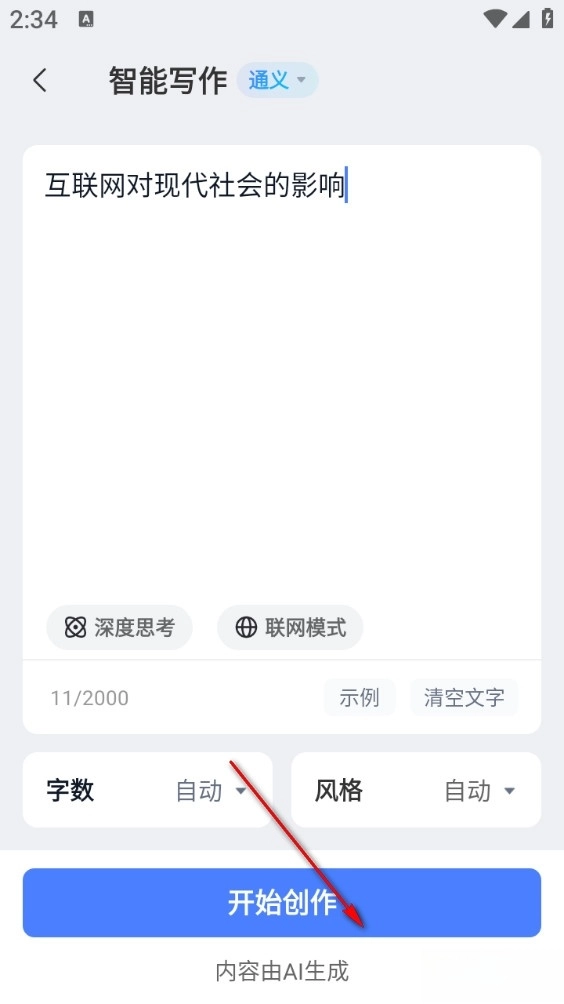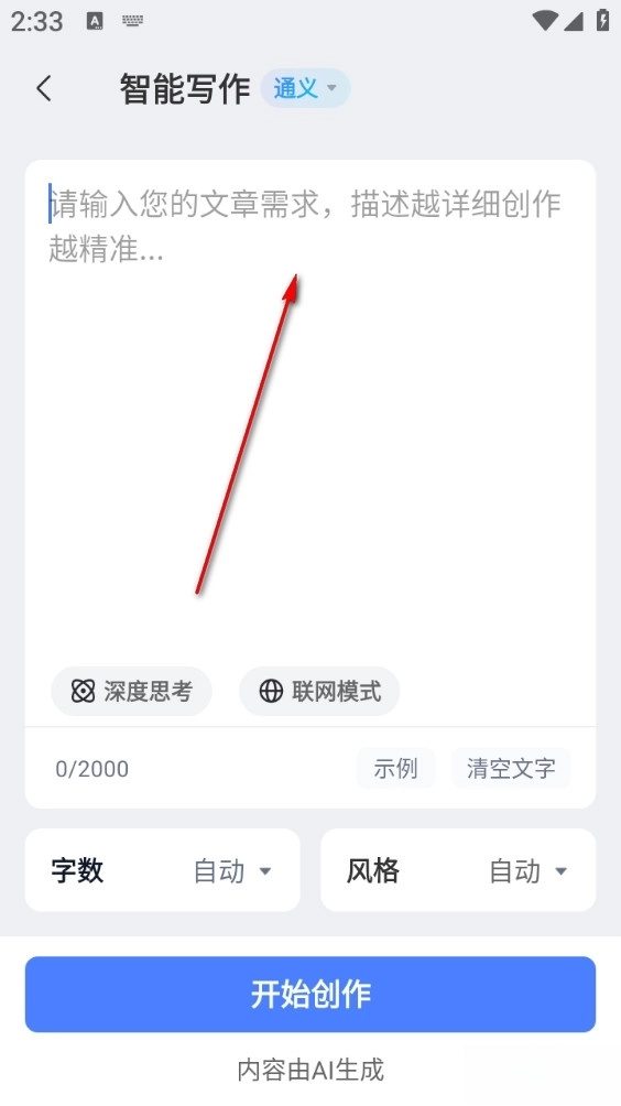 2、再输入需要生成的文章关键词
