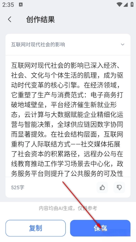 4、最后点击保存生成完的文章即可